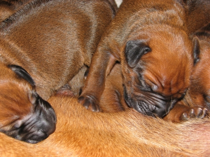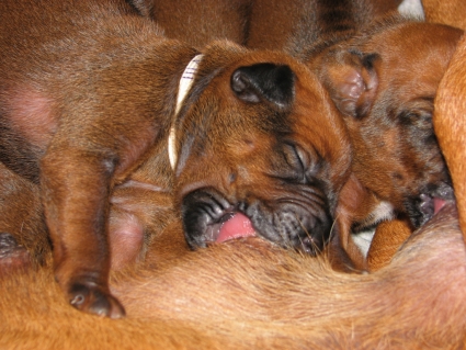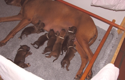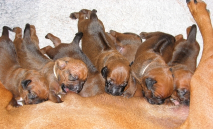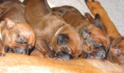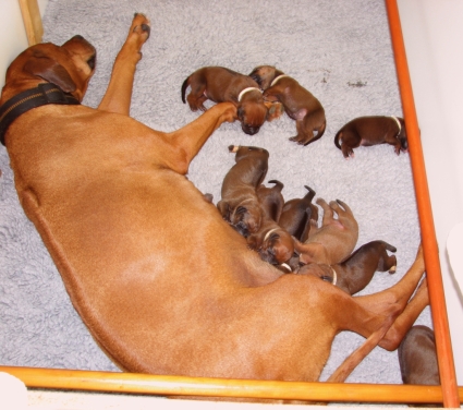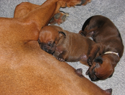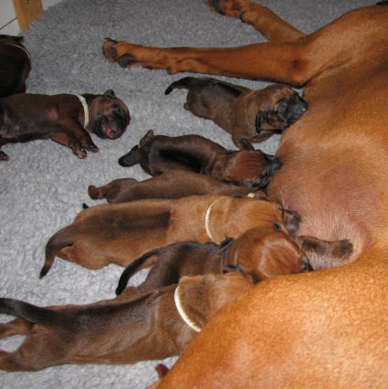 Chioma mit ihren Welpen, am 6. Tag nach der Geburt