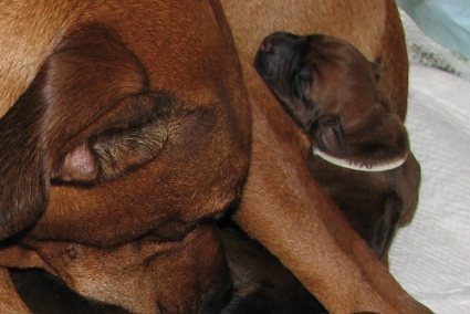 Spielende Ridgebacks Lubaya mit Asali im Alter von 7 Monate